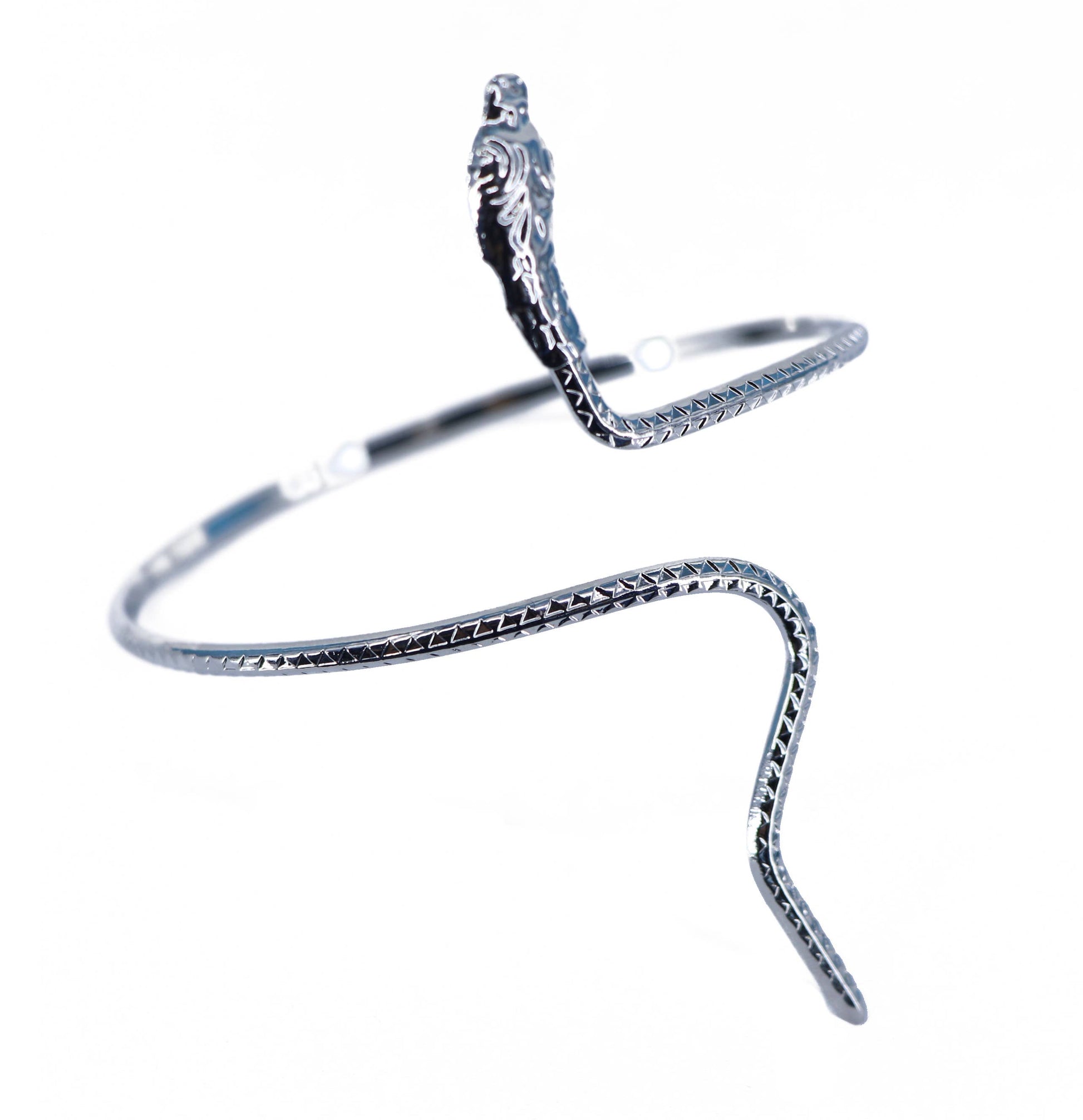 Cuff armband in a snake design to wrap around your arm. Despite its intricate detailing, it retains a lightweight feel for comfortable wear.