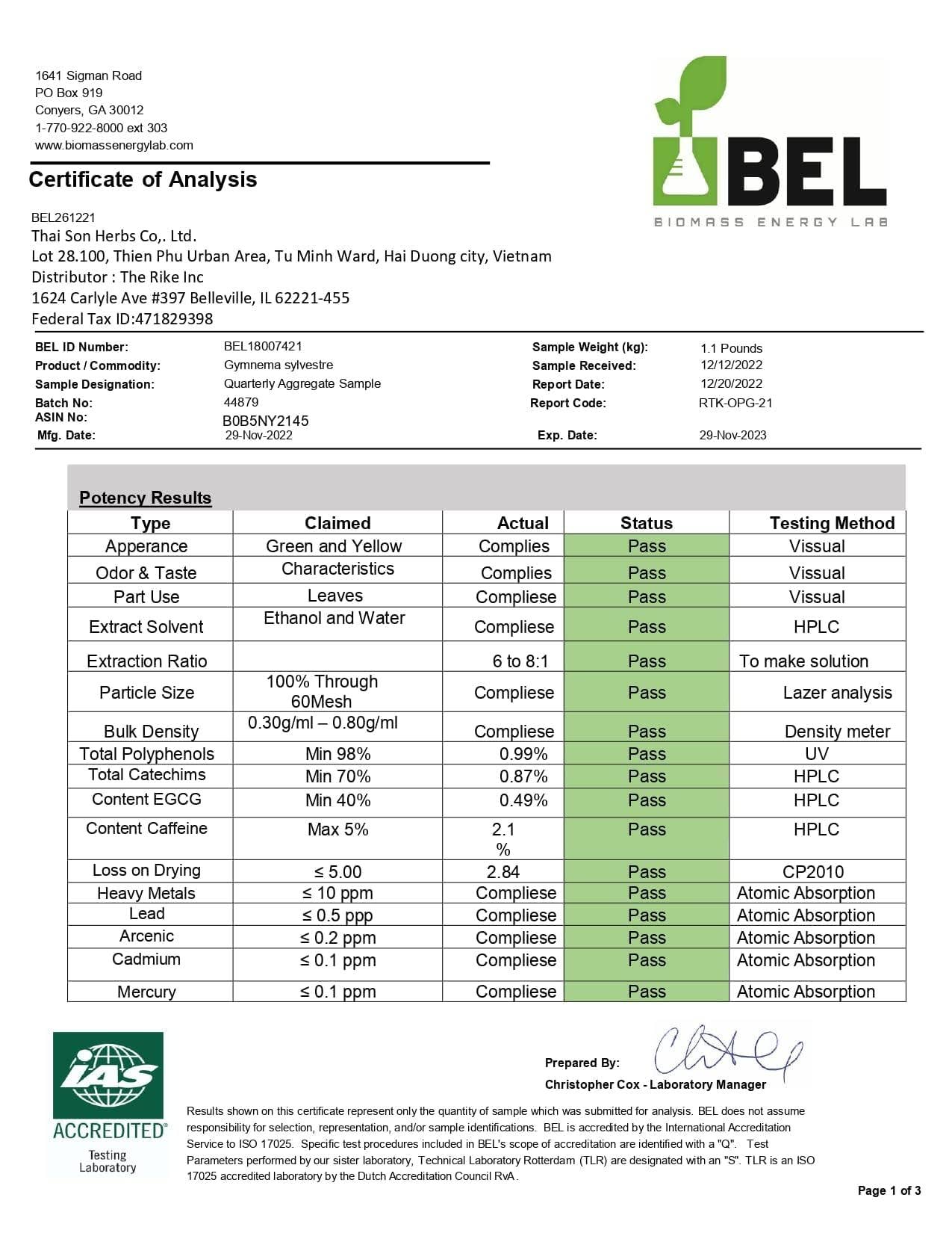The leaves and extracts contain gymnemic acids, the major bioactive constituet.