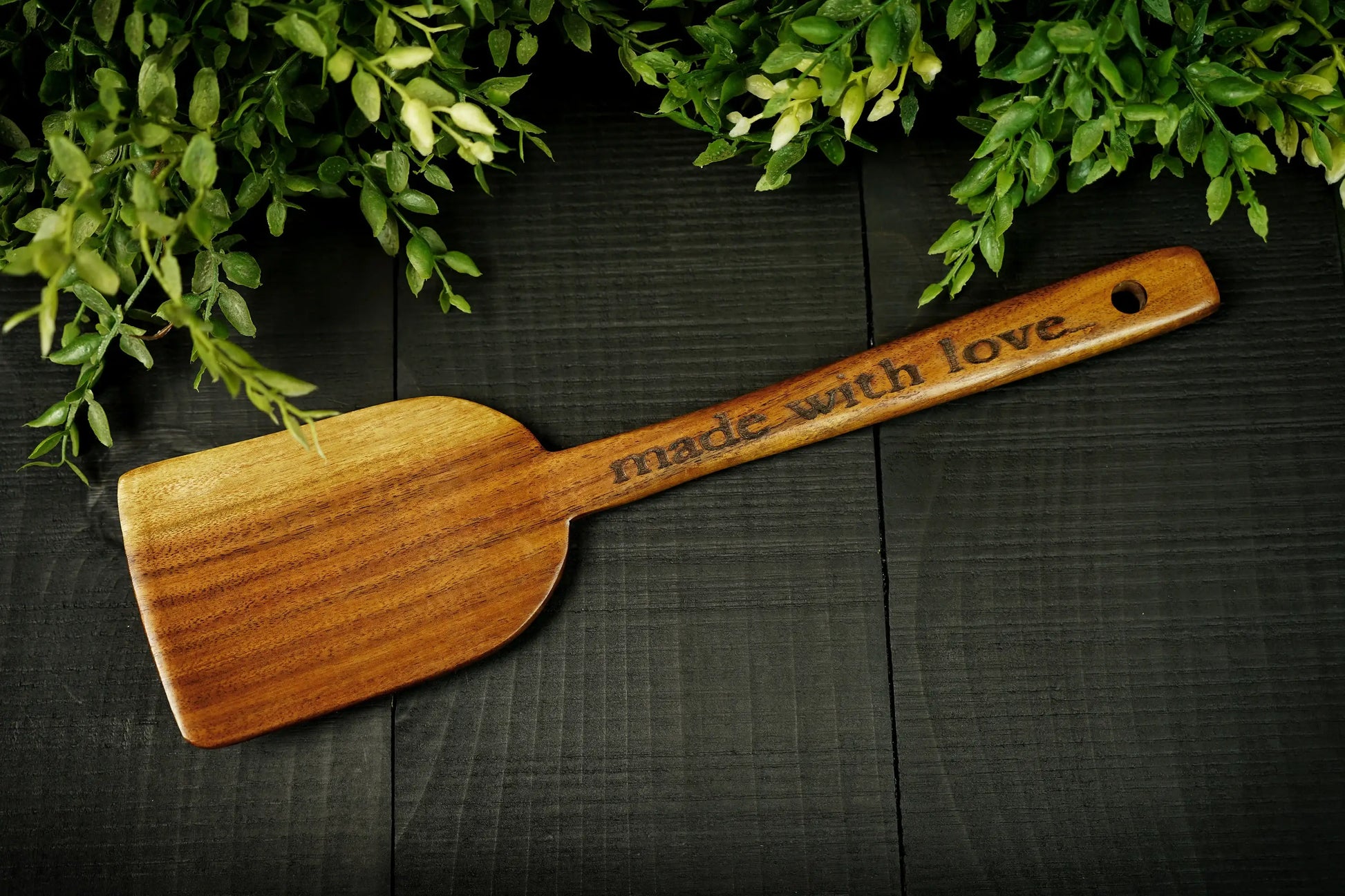 This wooden spatula is customed with "Mill Gap, VA" in the handle. Made of very beautiful Acacia wood. Suitable for cooking use or wall hanging.